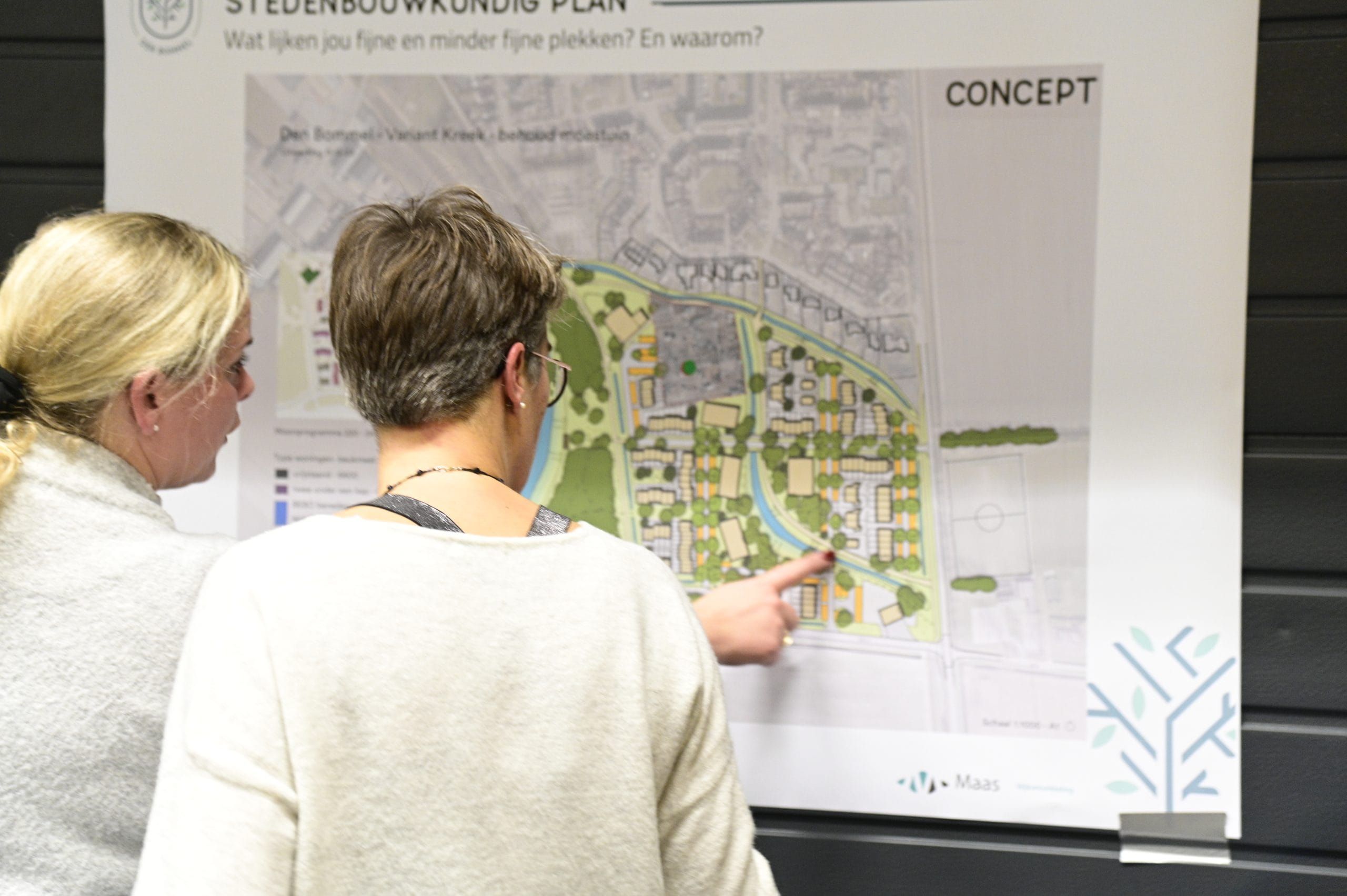 Op woensdag 13 november jl. vond in de Bommelstee de vervolgbijeenkomst plaats over de ontwikkeling van Bommelerbosch. We waren verheugd om wederom zoveel betrokkenheid te zien. De participatiebijeenkomst van 13 december 2023 werd zó goed bezocht dat we de avond dit keer bewust hebben opgedeeld in drie sessies. Twee van de drie sessies zaten weer helemaal vol! We willen alle aanwezigen hartelijk bedanken voor hun betrokkenheid. Want door deze betrokkenheid konden we nu een herijkt plan presenteren die beter aansluit op de wensen in Den Bommel. Het plan werd na een welkomstwoord van Roland (Maas Wijkontwikkeling) gepresenteerd door Wijnand (BoschSlabbers). Daarna hebben we de groep in tweeën gesplitst en vragen van de aanwezigen beantwoord.